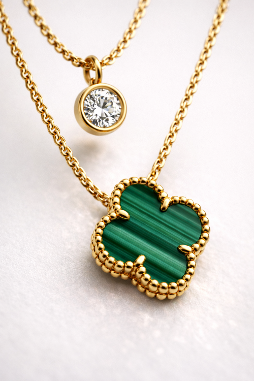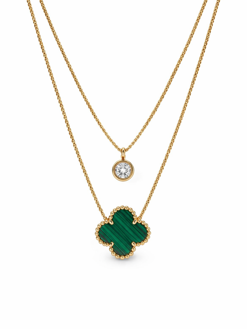 The clover form represents luck and harmony, while the vibrant green hue adds a refined pop of colour. Perfect for layering or wearing solo, this necklace transitions seamlessly from day to evening, complementing both modern and classic styles.